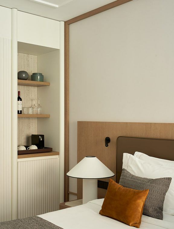 Actualmente, las habitaciones del hotel presentan una imagen desactualizada. Además, algunos acabados y elementos de mobiliario conservan una estética excesivamente corporativa, que se ha buscado superar mediante una propuesta más cálida, atemporal y personalizada.