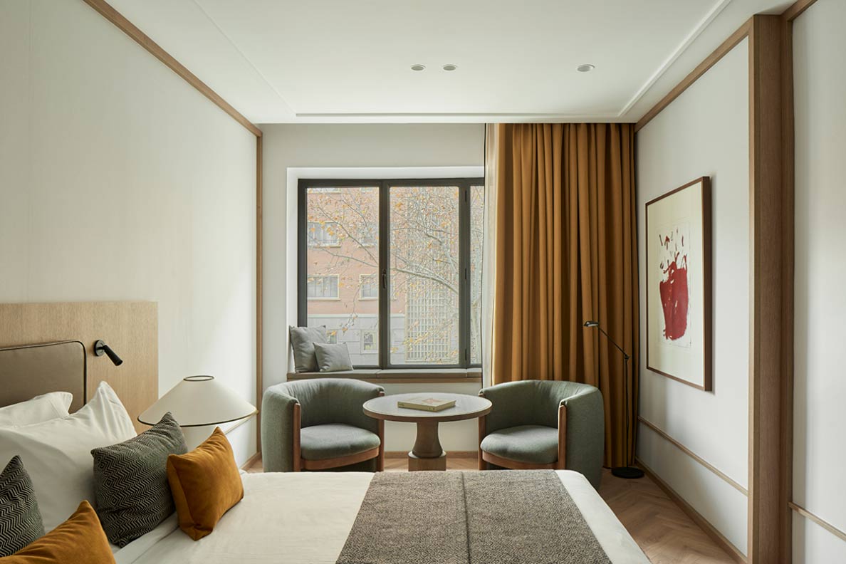 La intervención busca, en definitiva, transformar la experiencia del huésped a través de una arquitectura interior sobria, serena y cuidada hasta el detalle. Un espacio donde descansar y desconectar, en el corazón de Madrid.
