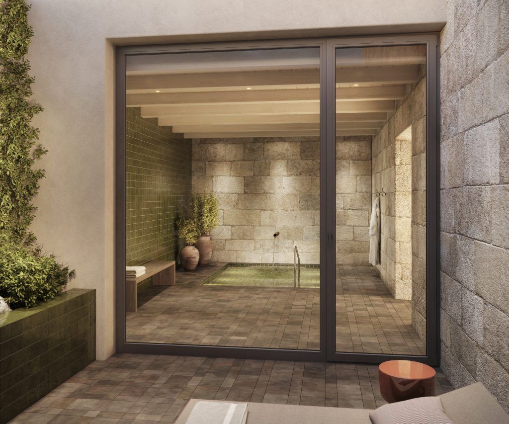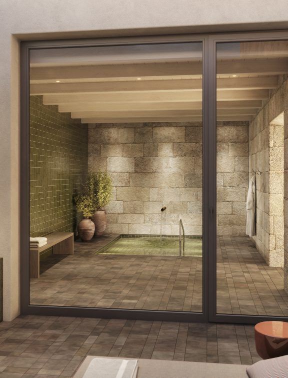 Finalmente, el hotel incorpora un spa íntimo, concebido como un refugio de bienestar que complementa la experiencia de hospitalidad. Ubicado en una de las antiguas estancias del palacio, este espacio mantiene la narrativa de materiales nobles y cálidos, adaptados a una atmósfera más sensorial y relajante.