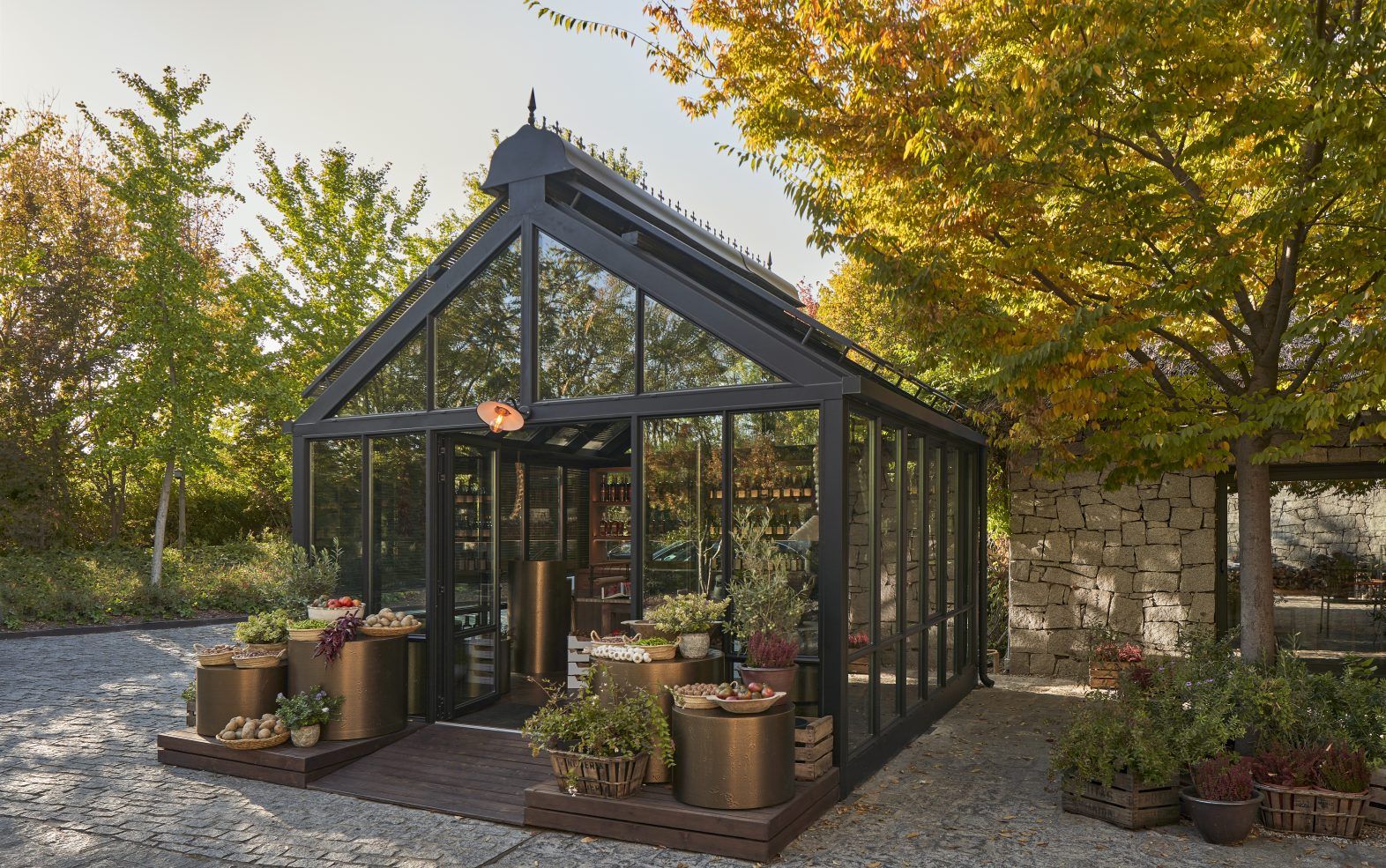 Un proyecto de diseño de espacios comerciales que refuerza el vínculo entre territorio y gastronomía, y que se completa con una selección de conservas y elaboraciones propias de Pescaderías Coruñesas, junto a los licores de Lhardy. El invernadero se convierte así en un espacio retail donde el producto se muestra sin artificios, reivindicando su origen, su temporalidad y su calidad.