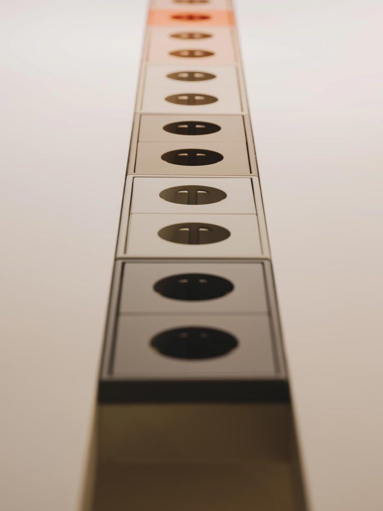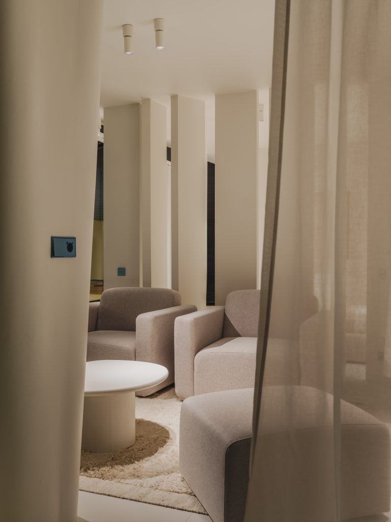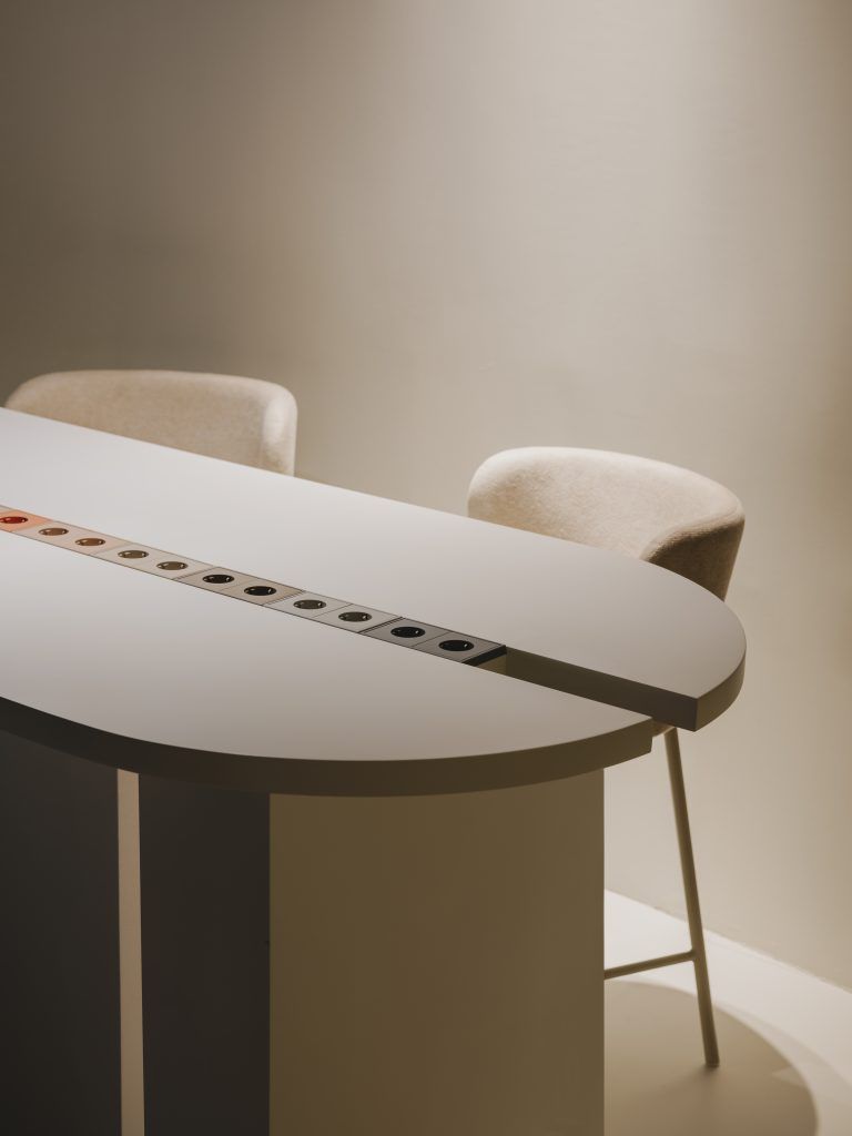 Sobre este telón de fondo neutro destacan, como acentos precisos, los mecanismos de JUNG. Integrados en distintos puntos de la estancia se convierten en pequeñas piezas de color que dialogan con la iluminación de espacios y la materialidad. Su presencia, lejos de ser anecdótica, estructura la lectura del espacio y demuestra cómo un elemento técnico puede adquirir un valor estético y sensorial en el diseño de interiores.