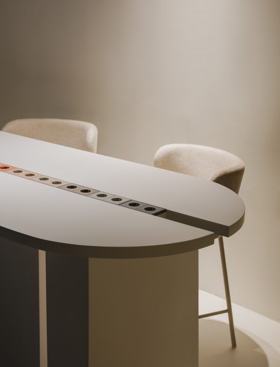 Trenchs Studio, estudio de interiorismo de Barcelona, crea así un espacio ferial que habla de serenidad, rigor y sensibilidad. En contraste con el ruido visual habitual de una feria de diseño, el stand demuestra que la contención y el orden también pueden convertirse en un gesto poderoso de comunicación en el diseño de espacios comerciales.