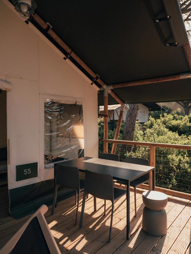 (+)En el corazón de una pineda, dentro de una dehesa en Cádiz, se sitúa este proyecto de glamping impulsado por WeCamp: una forma de camping de lujo que eleva la experiencia tradicional a través del diseño de interiores, el confort y una relación más consciente con el entorno natural. Rodeado de vegetación y con una baja densidad de tiendas, el conjunto de alojamientos se integra con naturalidad en un paisaje privilegiado, donde el tiempo parece discurrir a otro ritmo.